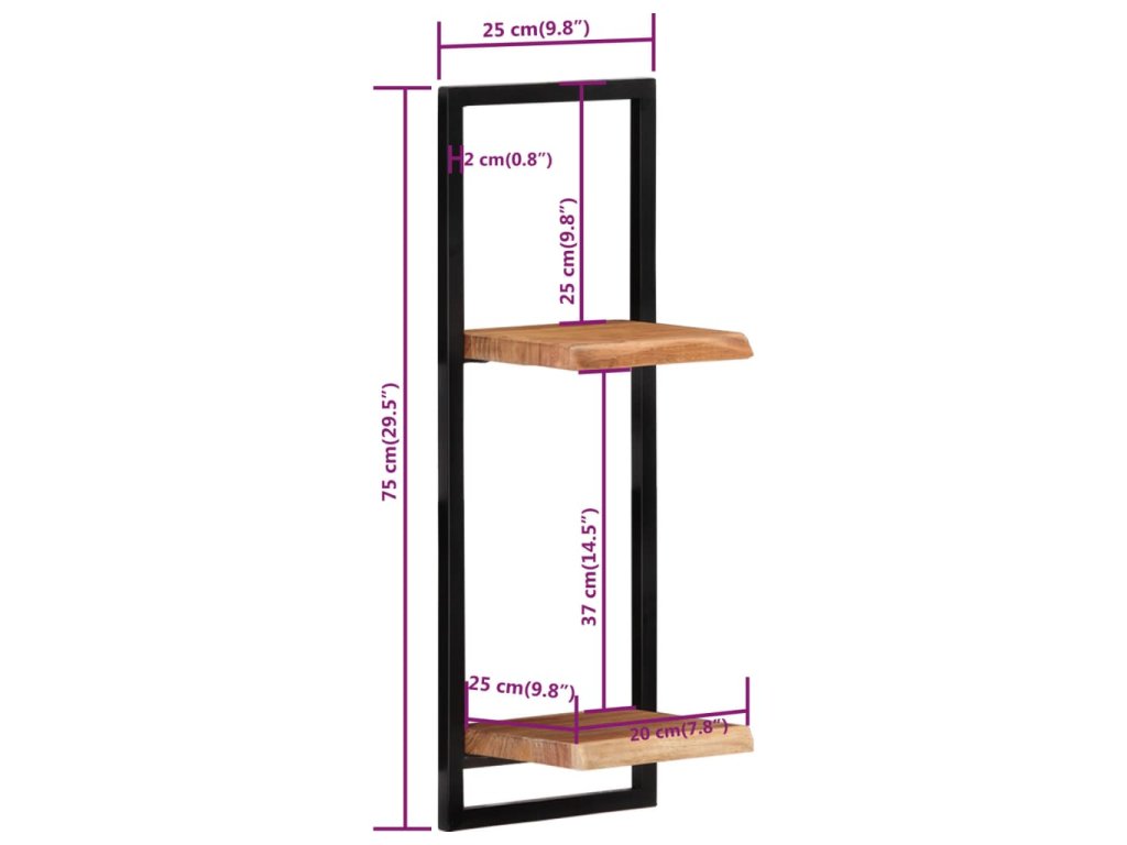 Nástěnné police 2 ks 25 x 25 x 75 cm masivní akácie a ocel