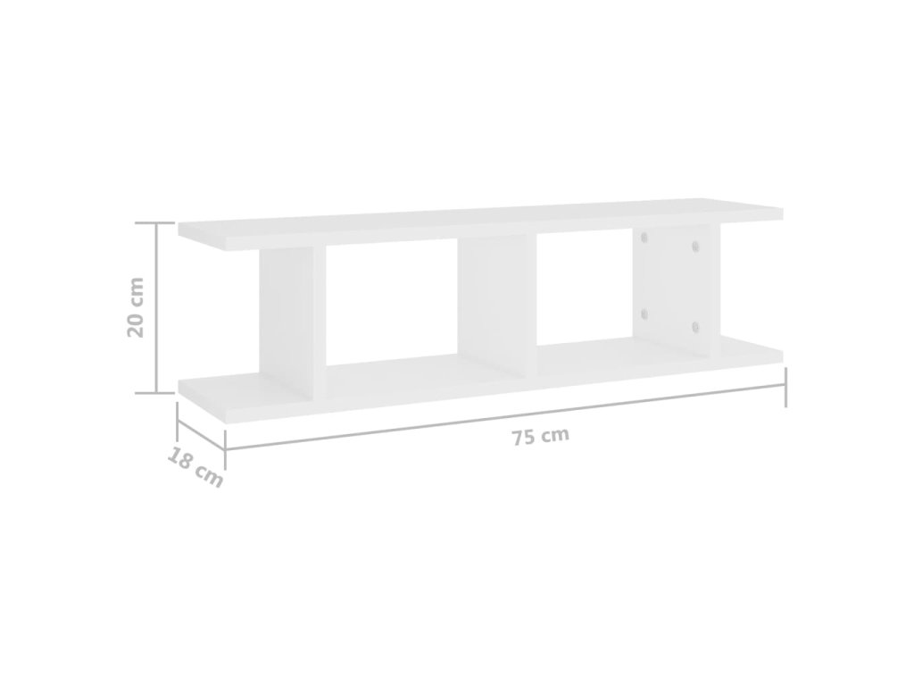 Nástěnné police 2 ks bílé 75 x 18 x 20 cm kompozitní dřevo