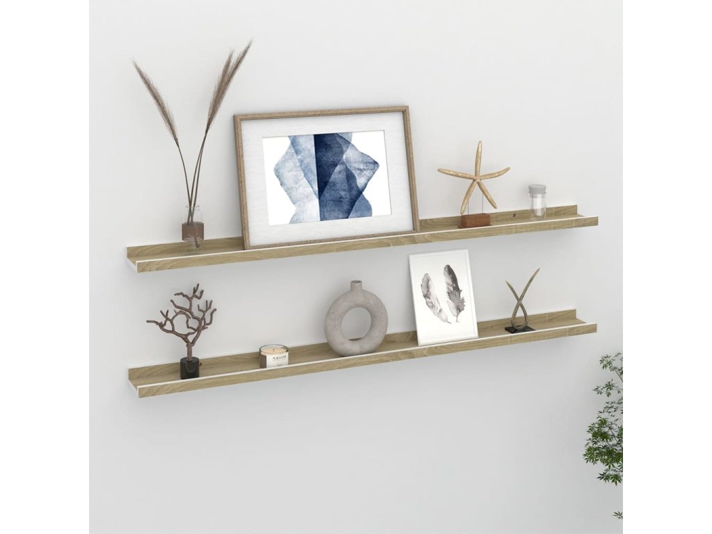 Nástěnné police 2 ks bílé a dub sonoma 100 x 9 x 3 cm