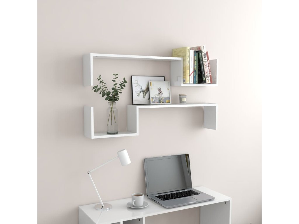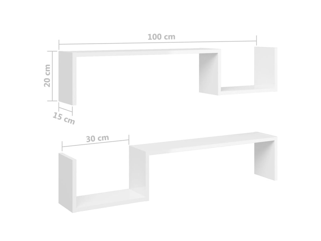 Nástěnné police 2 ks bílé lesklé 100x15x20 cm kompozitní dřevo