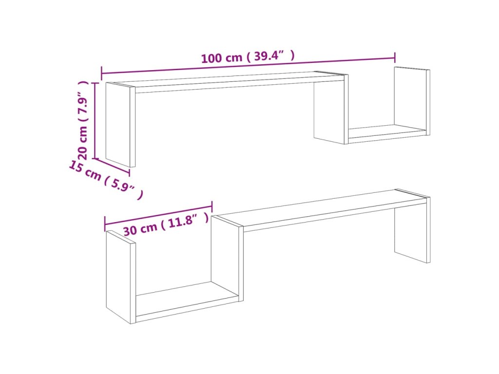 Nástěnné police 2 ks dub sonoma 100x15x20 cm kompozitní dřevo