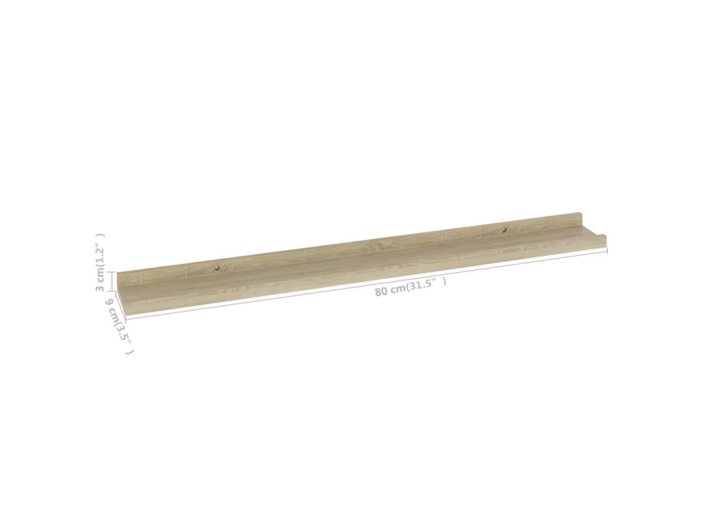 Nástěnné police 2 ks, dub sonoma, 80 x 9 x 3 cm