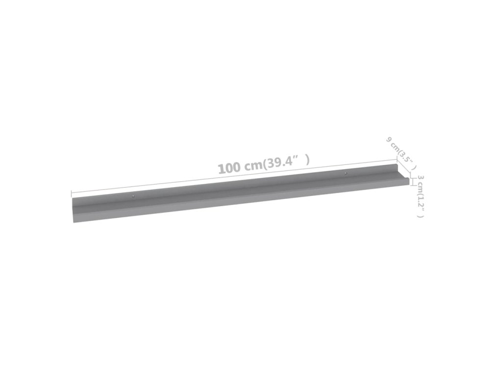 Nástěnné police 2 ks šedé 100 x 9 x 3 cm