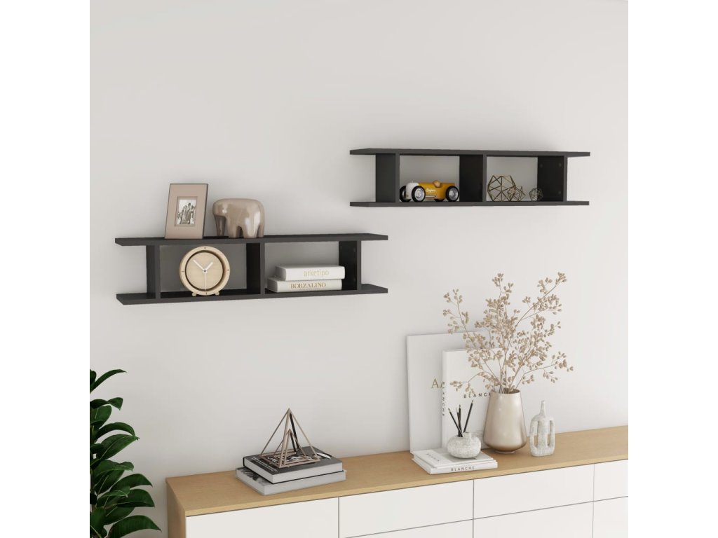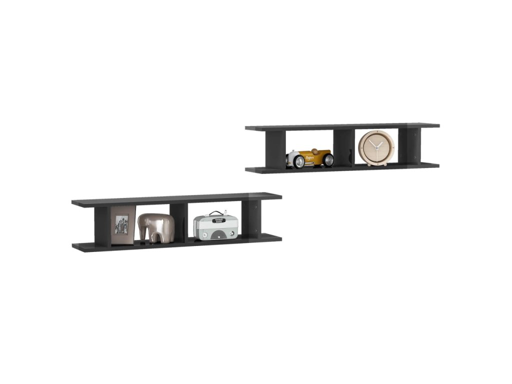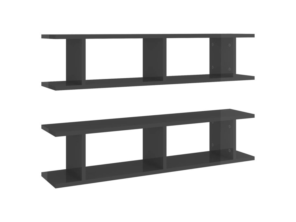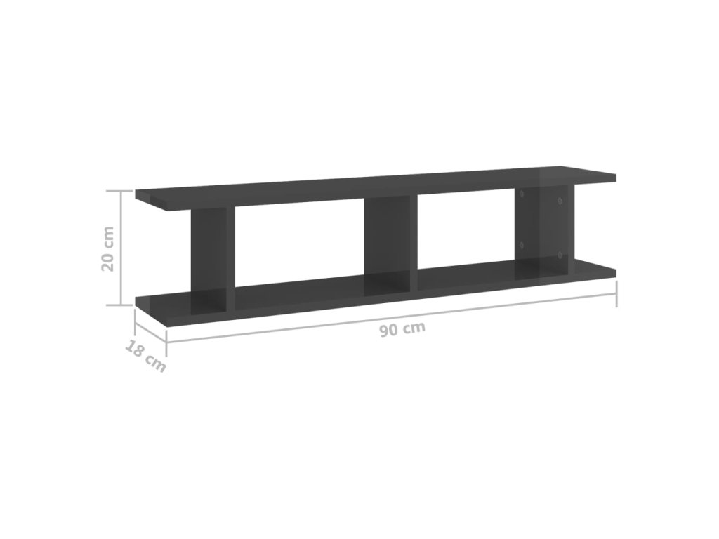 Nástěnné police 2 ks šedé lesklé 90x18x20 cm kompozitní dřevo