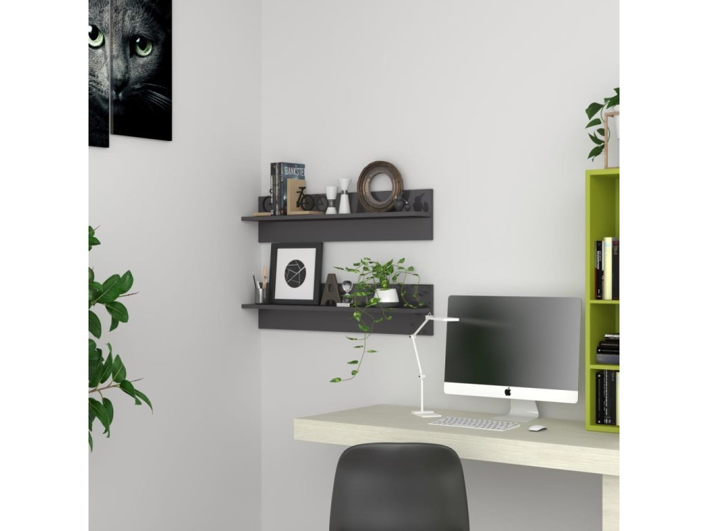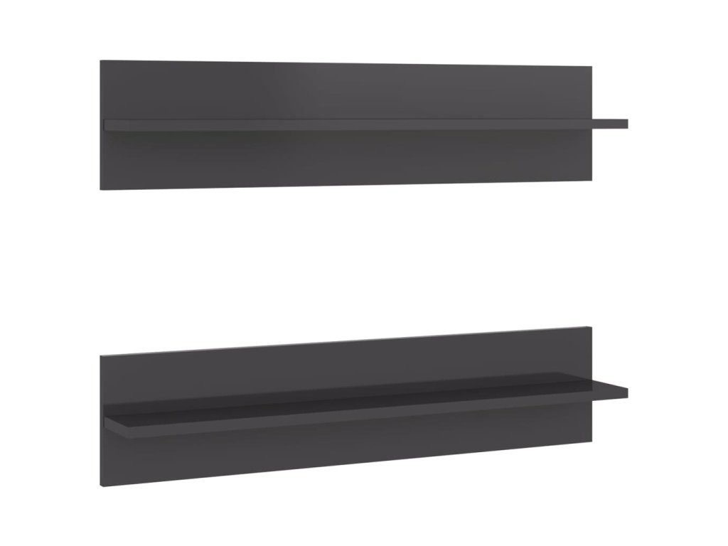 Nástěnné police 2 ks šedé vysoký lesk 80x11,5x18 cm kompozit