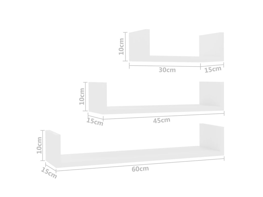 Police jsou vyrobeny z dřevotřísky, která zajišťuje jejich pevnost, odolnost a dlouhou životnost. Design ve tvaru písmene U nabízí dostatek prostoru pro vystavení dekorací a květin nebo k ukládání vašich knih, CD a dalších nezbytností.