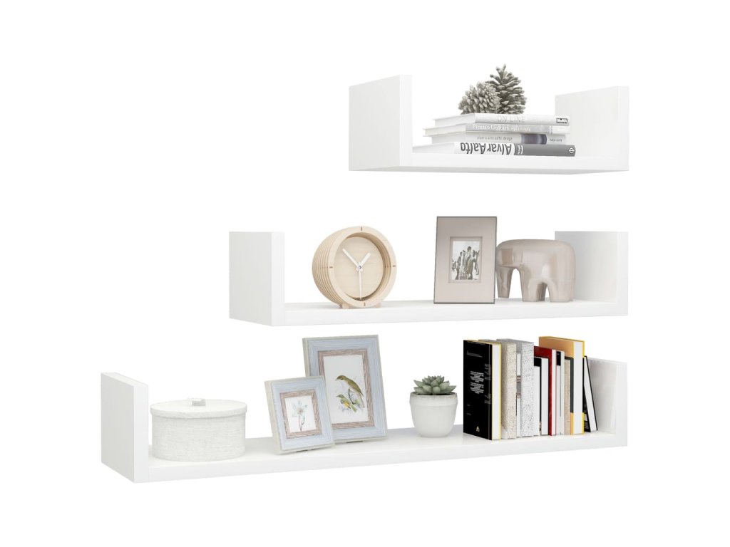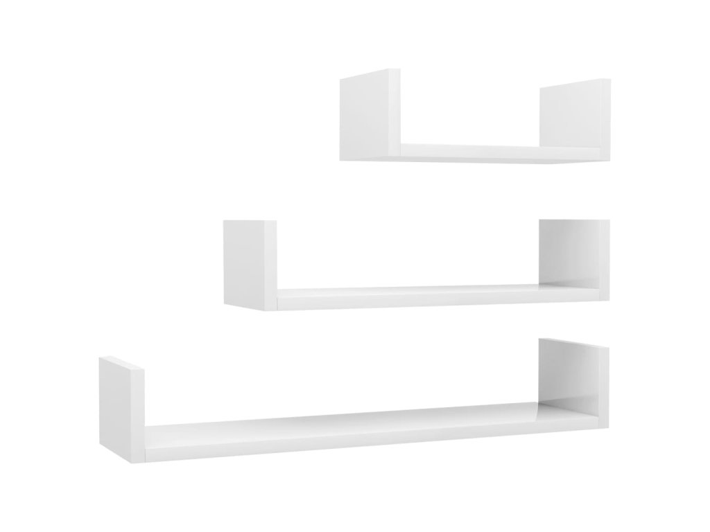 Nástěnné police 3 ks bílé vysoký lesk dřevotříska