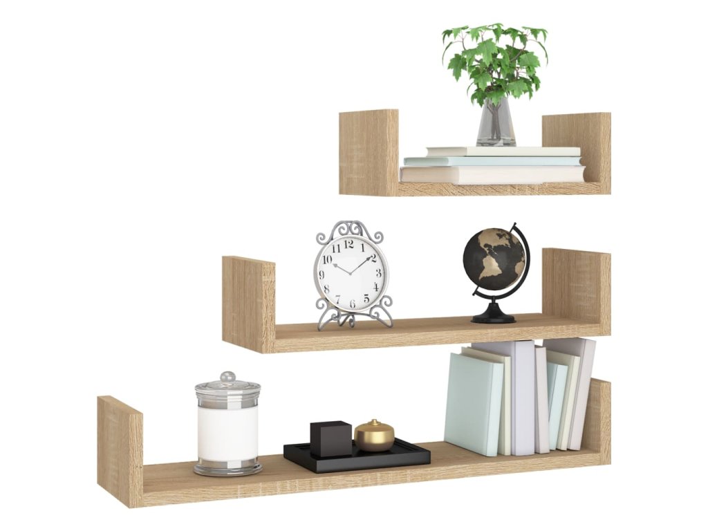 Nástěnné police 3 ks dub sonoma kompozitní dřevo