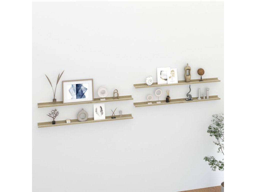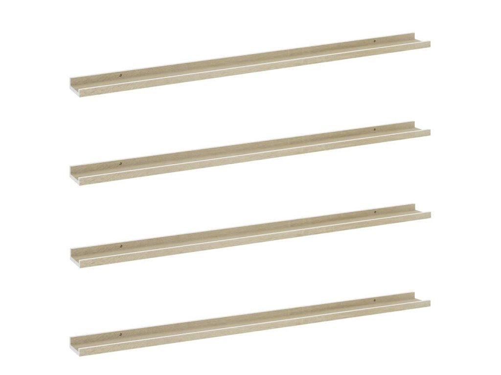 Nástěnné police 4 ks bílé a dub sonoma 115 x 9 x 3 cm