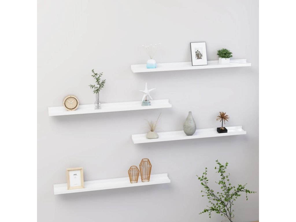 Nástěnné police 4 ks bílé s vysokým leskem 80 x 9 x 3 cm
