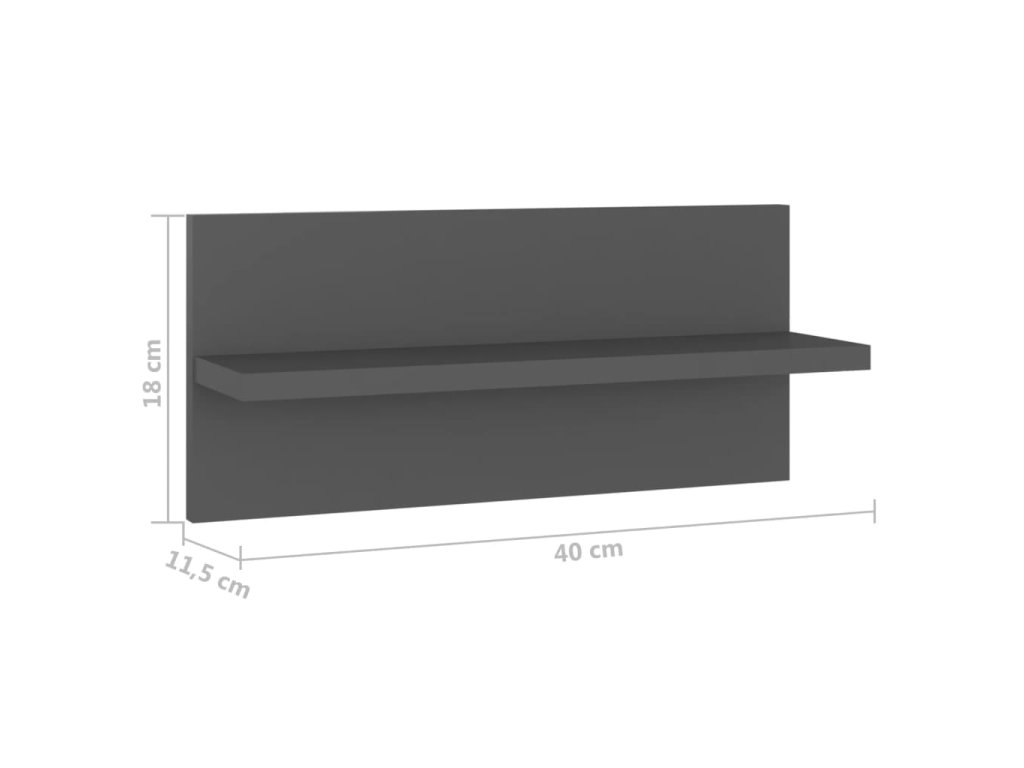 Nástěnné police 4 ks šedé 40 x 11,5 x 18 cm kompozitní dřevo
