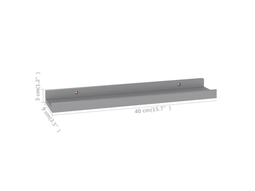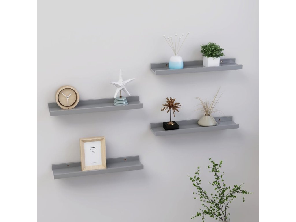 Nástěnné police 4 ks šedé 40 x 9 x 3 cm