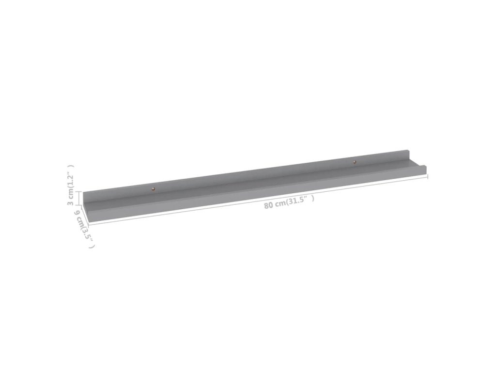 Nástěnné police 4 ks šedé 80 x 9 x 3 cm
