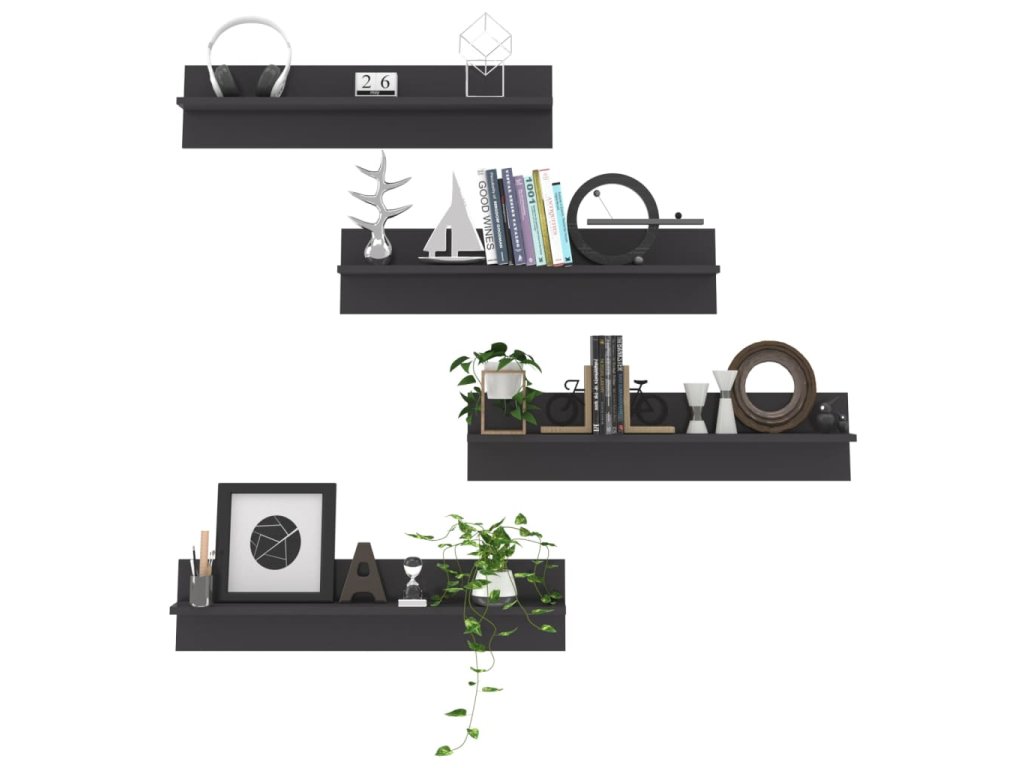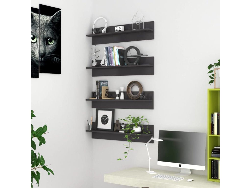 Nástěnné police 4 ks šedé vysoký lesk 80x11,5x18 cm kompozit