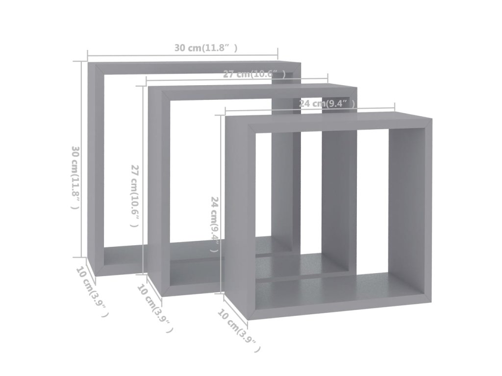 Nástěnné police kostky 3 ks šedé MDF