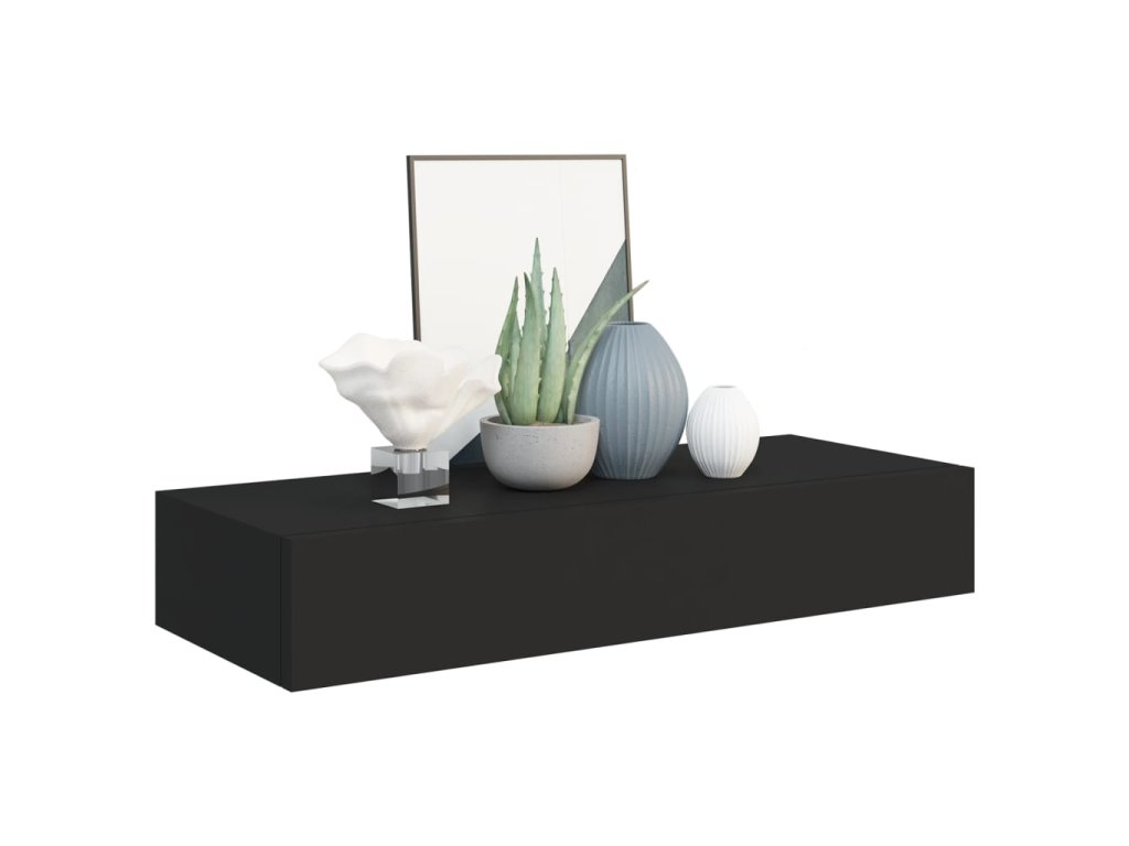 Tato plovoucí police je vyrobena z MDF a kovu a je navržena tak, aby vydržela. Nástěnná police se zásuvkou umožňuje uložení drobných předmětů, jako jsou šperky, hodinky, peněženky, klíče atd. Dodá různým obývacím pokojům design a styl a dodá jim světlý pocit.