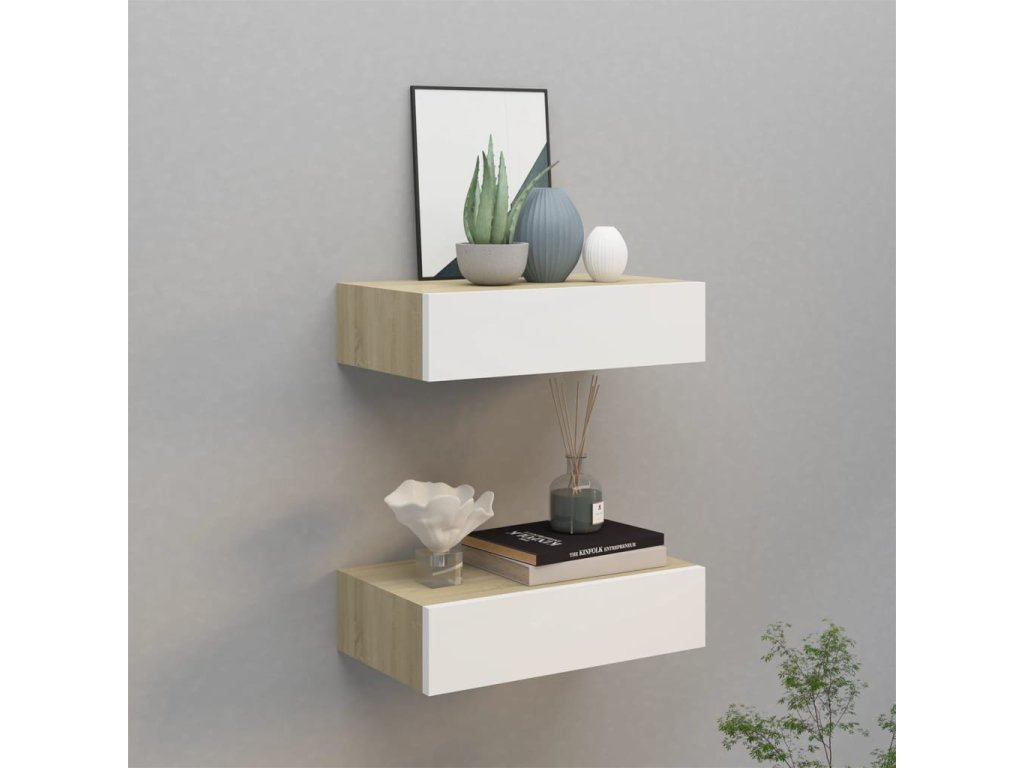 Nástěnné police se zásuvkou 2 ks dub a bílé 40x23,5x10 cm MDF