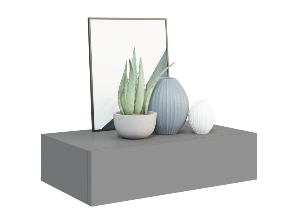 Tato plovoucí police je vyrobena z MDF a kovu a je navržena tak, aby vydržela. Nástěnná police se zásuvkou umožňuje uložení drobných předmětů, jako jsou šperky, hodinky, peněženky, klíče atd. Dodá různým obývacím pokojům design a styl a dodá jim světlý pocit.