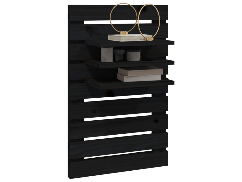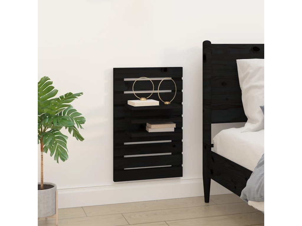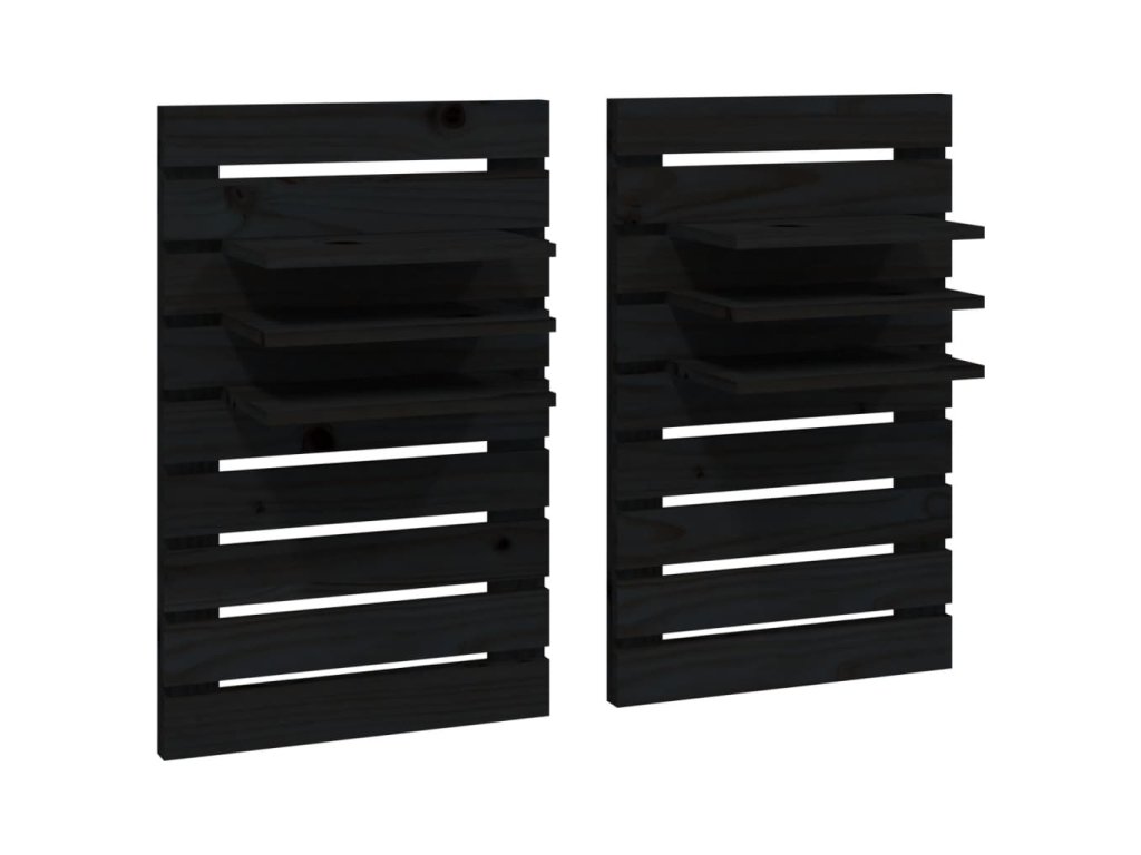 Nástěnné poličky k posteli 2 ks černé masivní borové dřevo