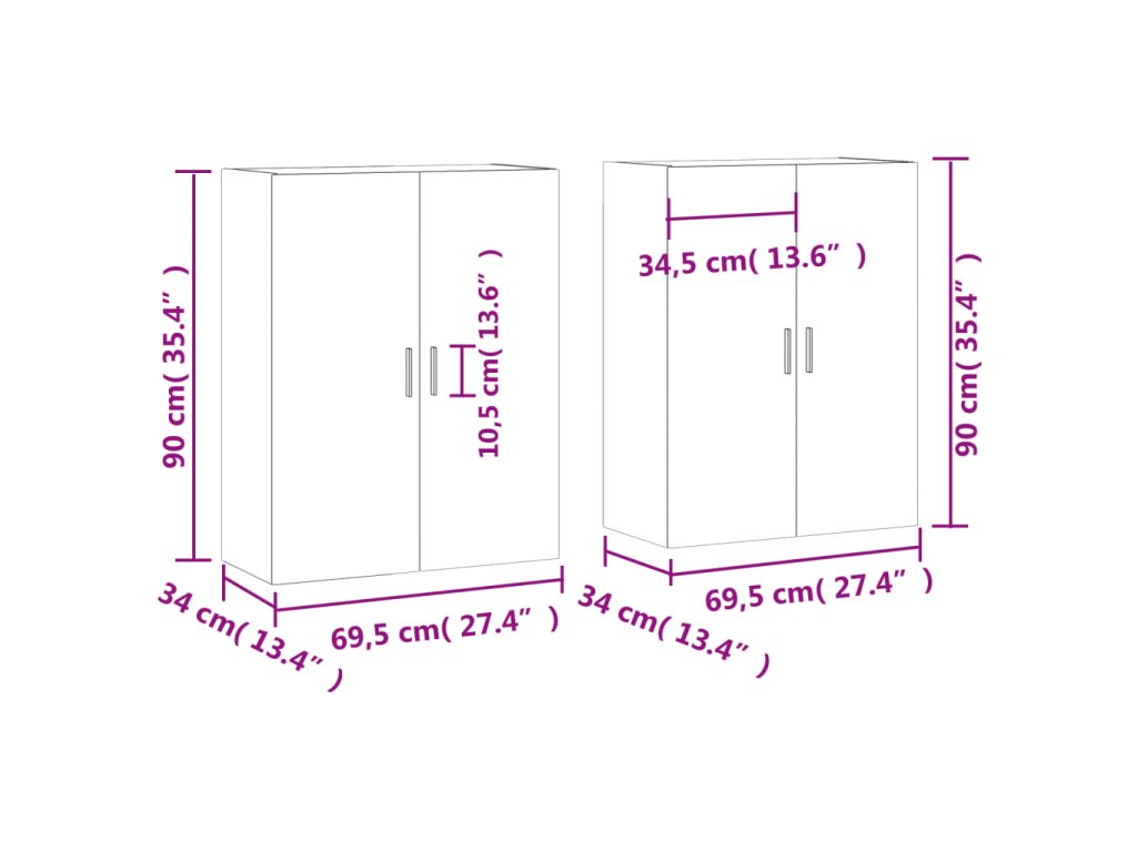 - Rozměry (každý kus): 69,5 x 34 x 90 cm (Š x H x V)