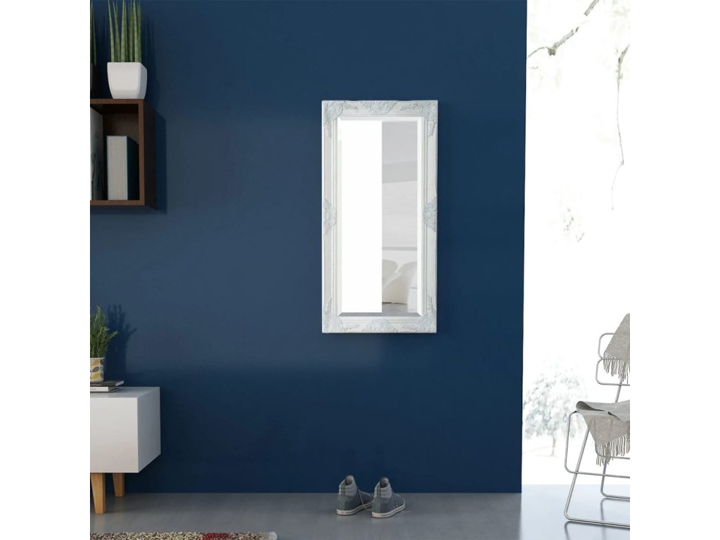 Nástěnné zrcadlo barokní styl 100 x 50 cm bílé