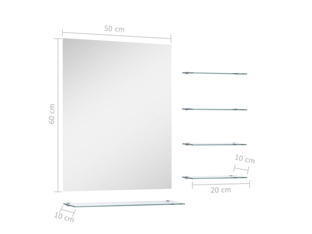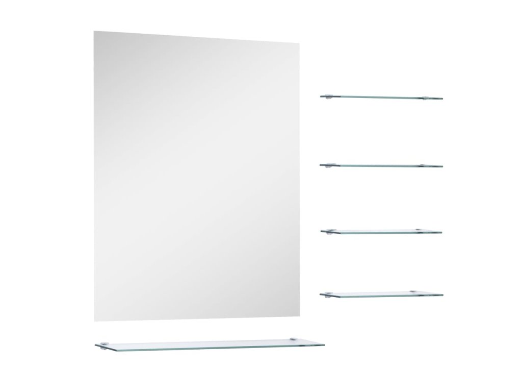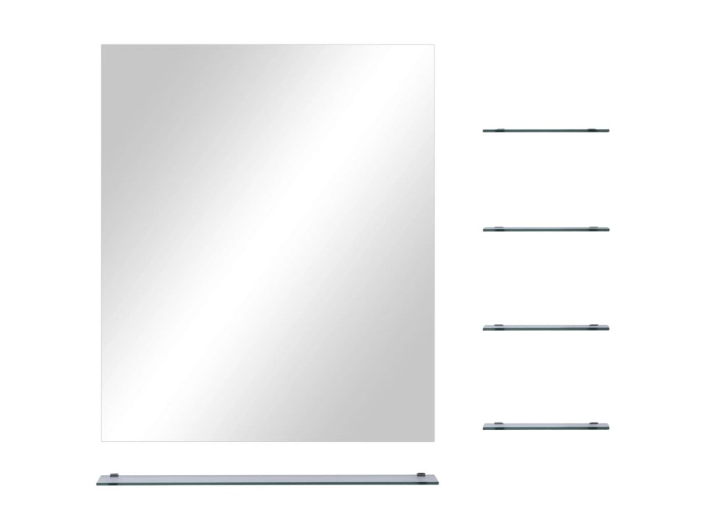 Zrcadlo je vyrobené z tvrzeného skla, a proto má tento koupelnový nábytek dlouhou životnost a snadno se čistí. Obdélníkový rám má minimalistický moderní design, který zkrášlí každou místnost, zatímco čtyři malé poličky a jedna velká police nabídnou dodatečný úložný prostor. Můžete si zde úhledně zorganizovat různé oděvní doplňky či kosmetické potřeby nebo si vystavit své oblíbené dekorace.