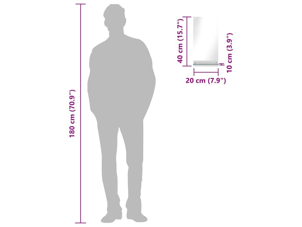 Nástěnné zrcadlo s policí 20 x 40 cm tvrzené sklo