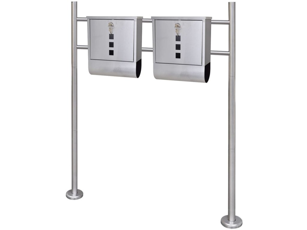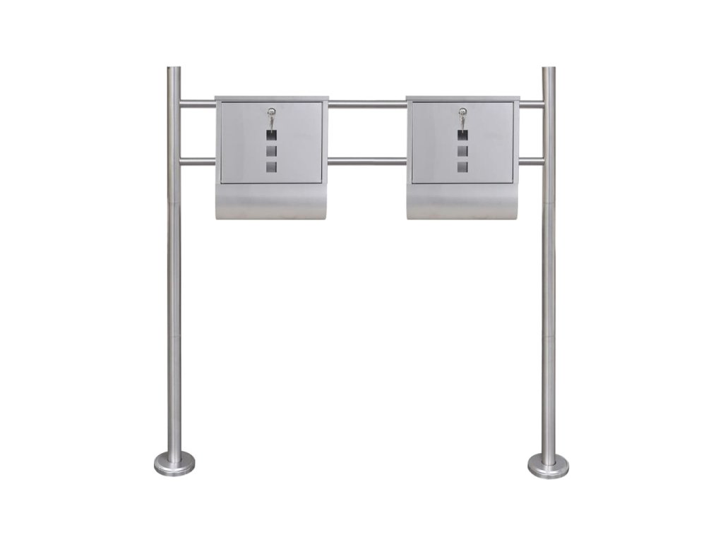 - Dodávka zahrnuje 2 schránky na dopisy, stojan, 4 klíčky a materiál na připevnění