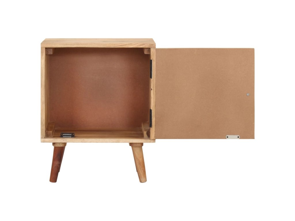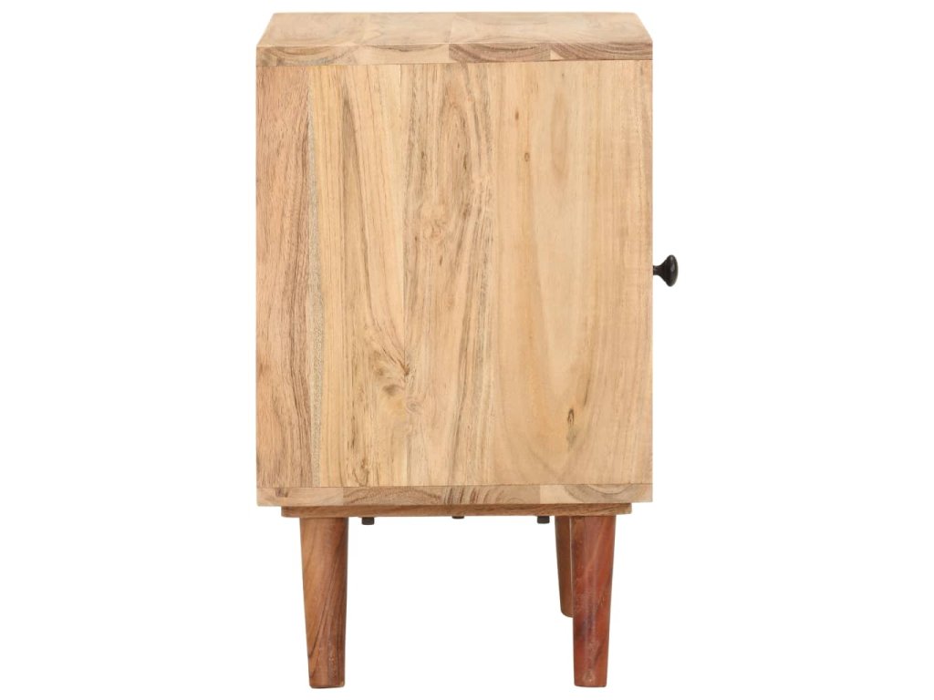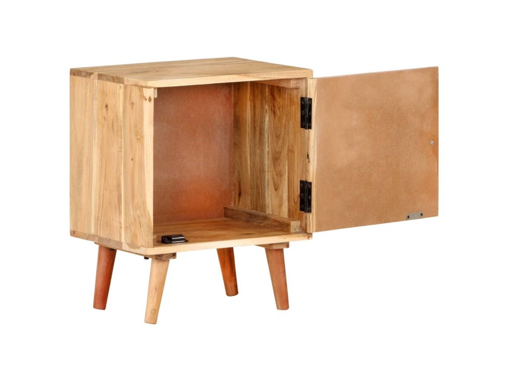Tento noční stolek je vyrobený z masivního akáciového dřeva. Jedná se o tropické tvrdé dřevo, které je odolné vůči klimatickým vlivům a má dlouhou životnost. Dřevěná skříňka je vybavena velkým úložným prostorem, takže si můžete uložit jakékoli předměty.
