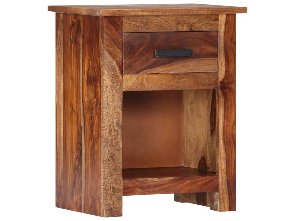 Tento rustikální a módní noční stolek z masivního dřeva bude dekorativním i praktickým doplňkem vašeho interiéru.