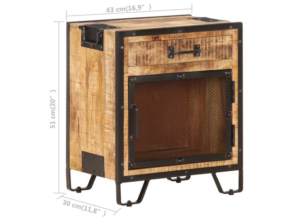 Noční stolek 43 x 30 x 51 cm masivní hrubé mangovníkové dřevo