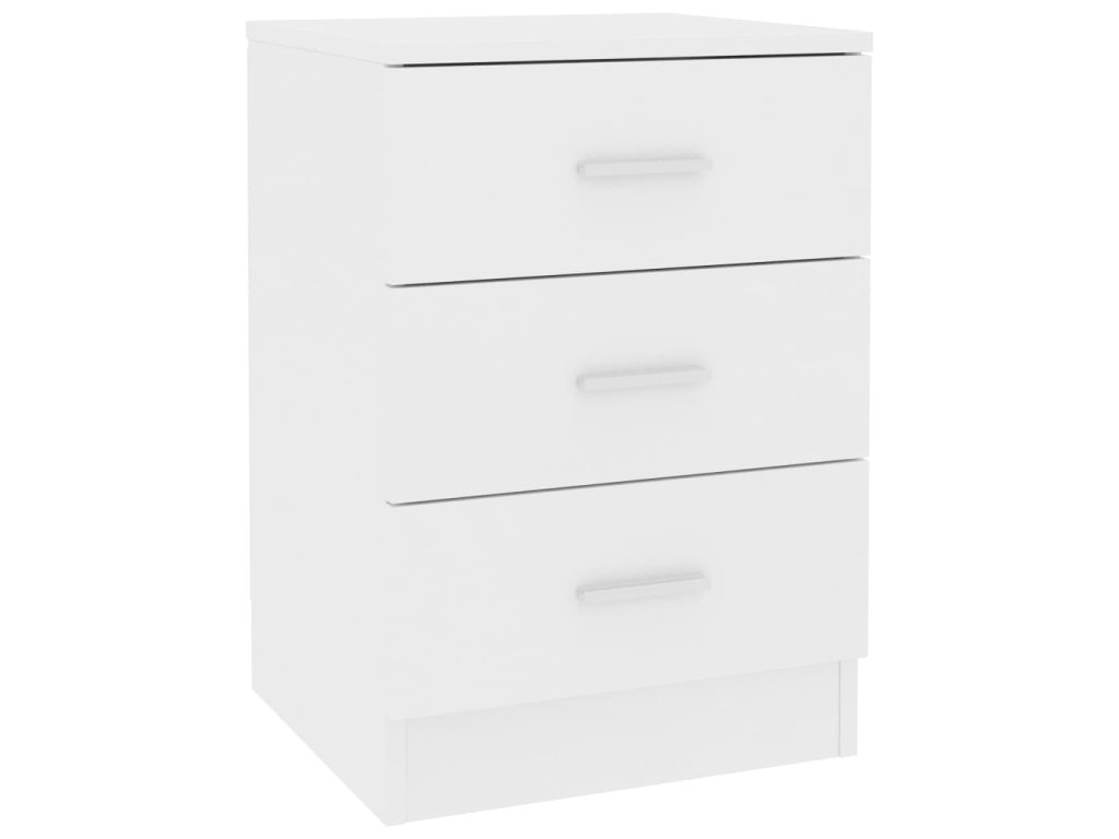 Noční stolek je vyrobený z kvalitního kompozitního dřeva, je proto robustní, odolný a všestranný. Vzhledem k jeho univerzálnímu designu ho můžete uplatnit také jako stolek k pohovce v obývacím pokoji. Tři zásuvky vám poskytnou spoustu úložného prostoru pro vaše časopisy, knihy, dálkové ovladače a mnoho dalších předmětů, ve kterých chcete mít pořádek, ale přitom je mít na dosah ruky. Noční stolek se navíc dá snadno čistit vlhkým hadříkem.