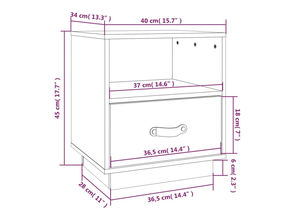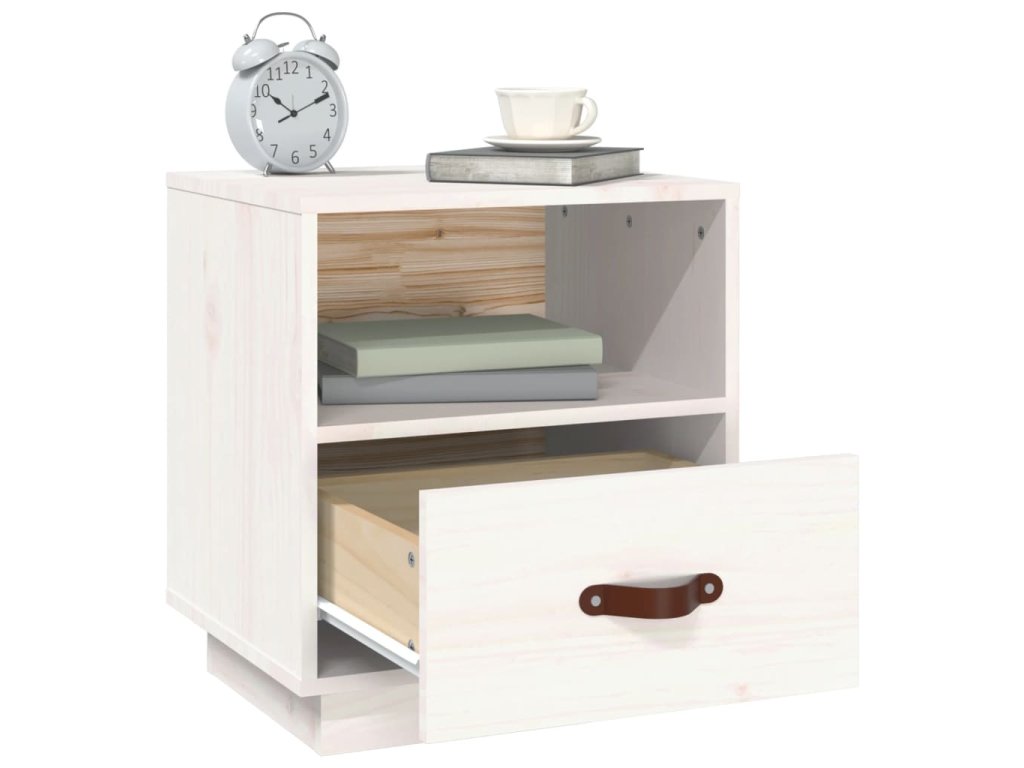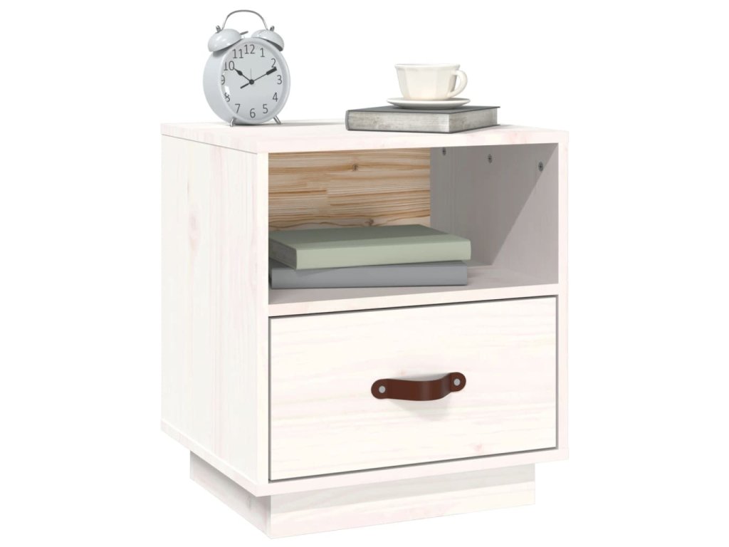 Noční stolek bílý 40 x 34 x 45 cm masivní borové dřevo