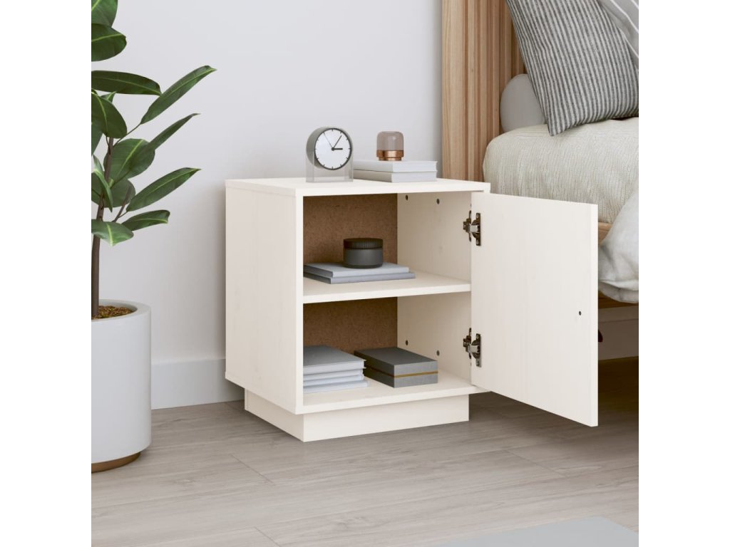 Noční stolek bílý 40 x 34 x 45 cm masivní borové dřevo