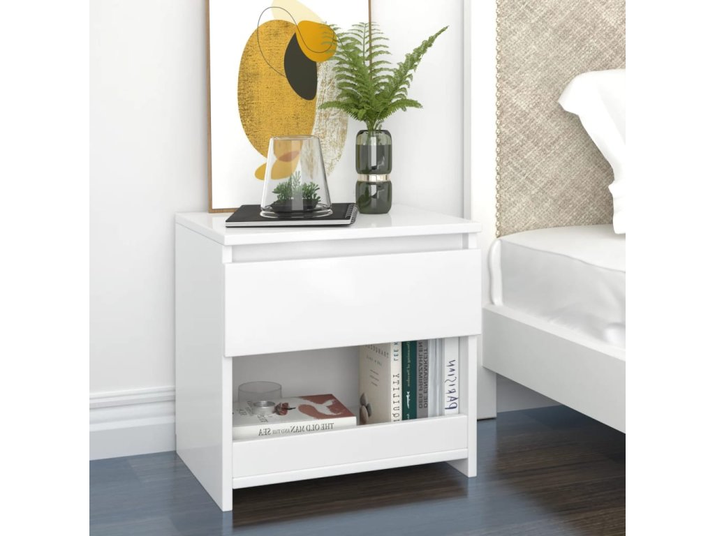 Noční stolek bílý s vysokým leskem 40x30x39 cm kompozitní dřevo
