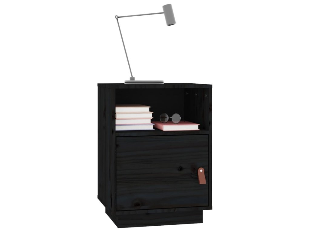 Noční stolek černý 40 x 34 x 55 cm masivní borové dřevo
