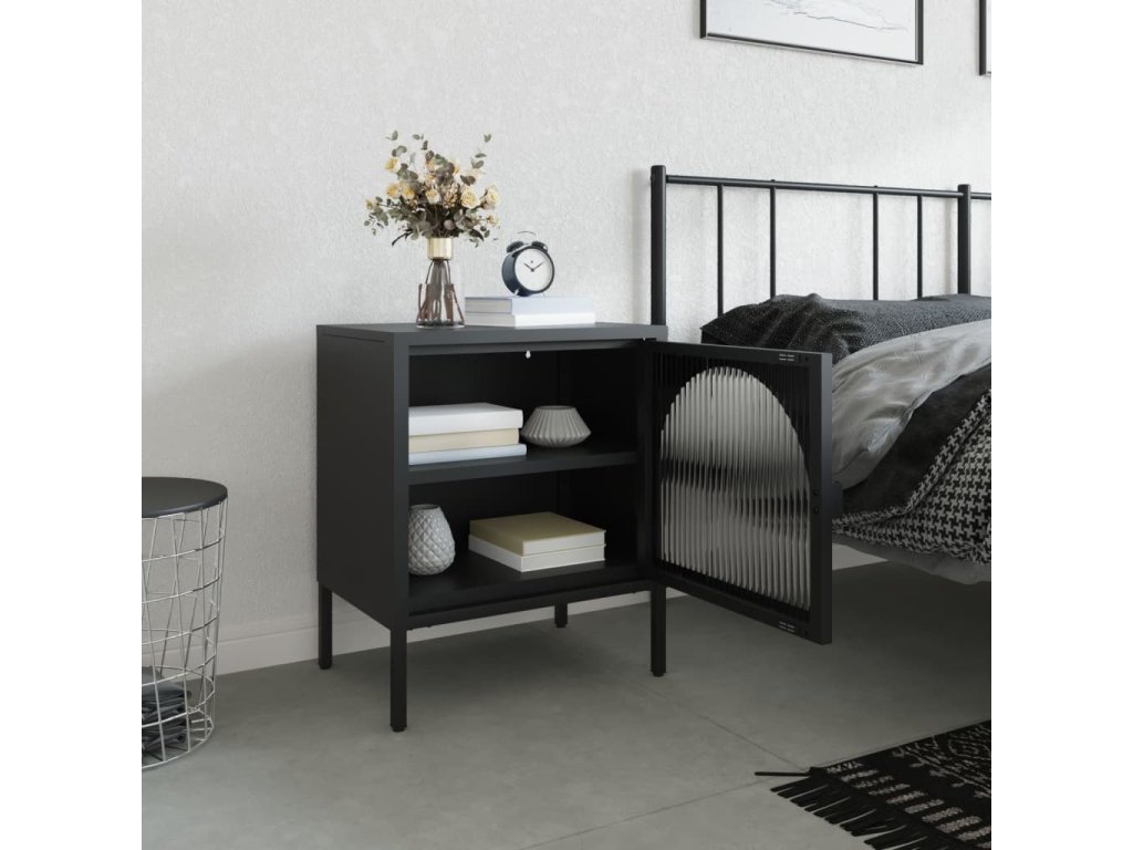 - Stabilní materiál: Rám nočního stolku je vyroben z práškově lakované oceli. Ocel je mimořádně tvrdý a pevný materiál. Zajišťuje pevnost a stabilitu. Práškové lakování vytváří na oceli ochrannou vrstvu proti opotřebení.