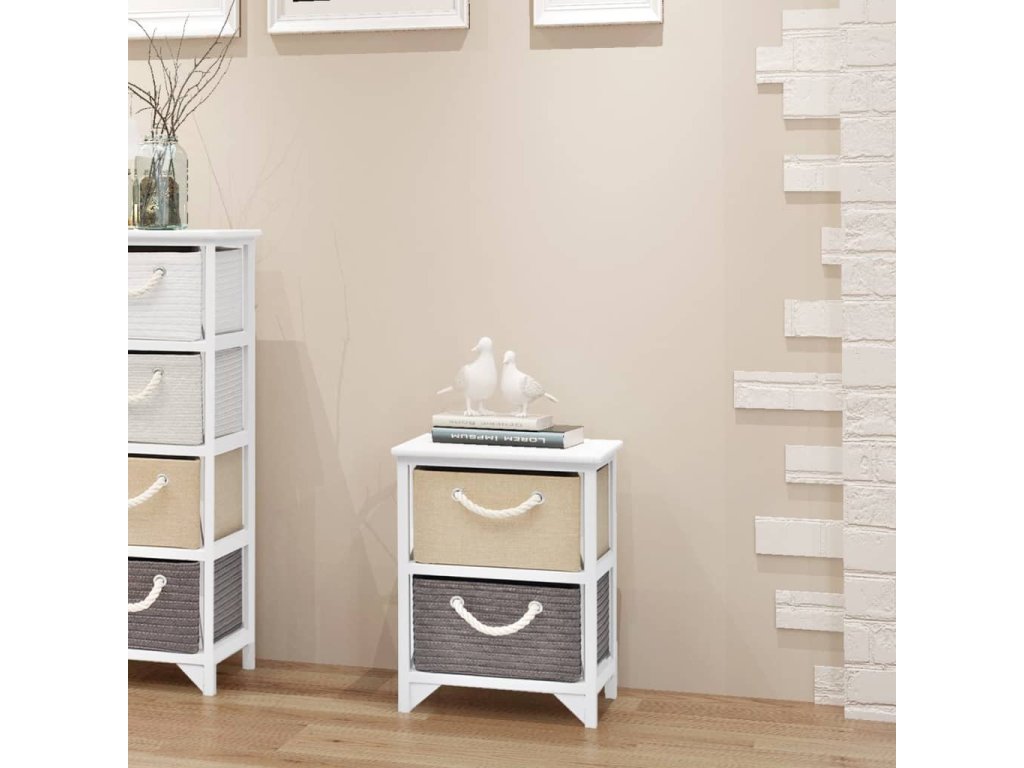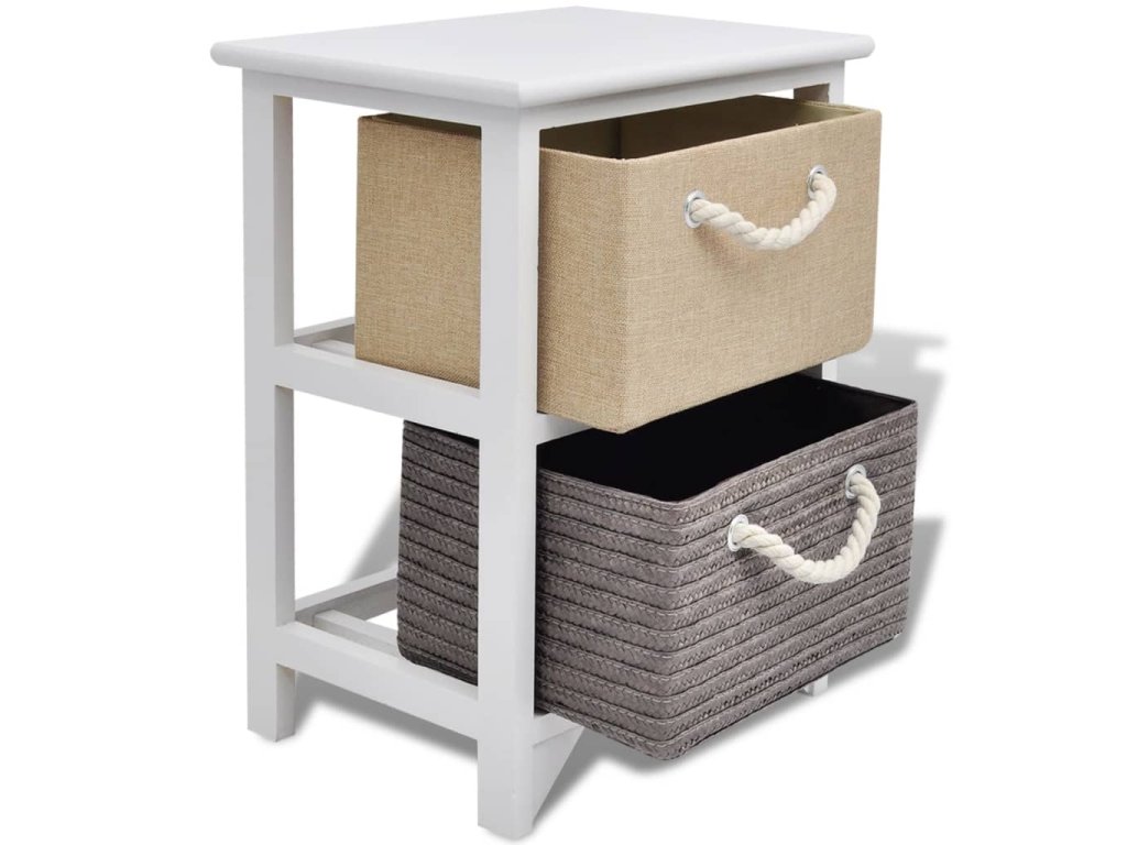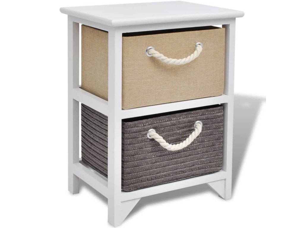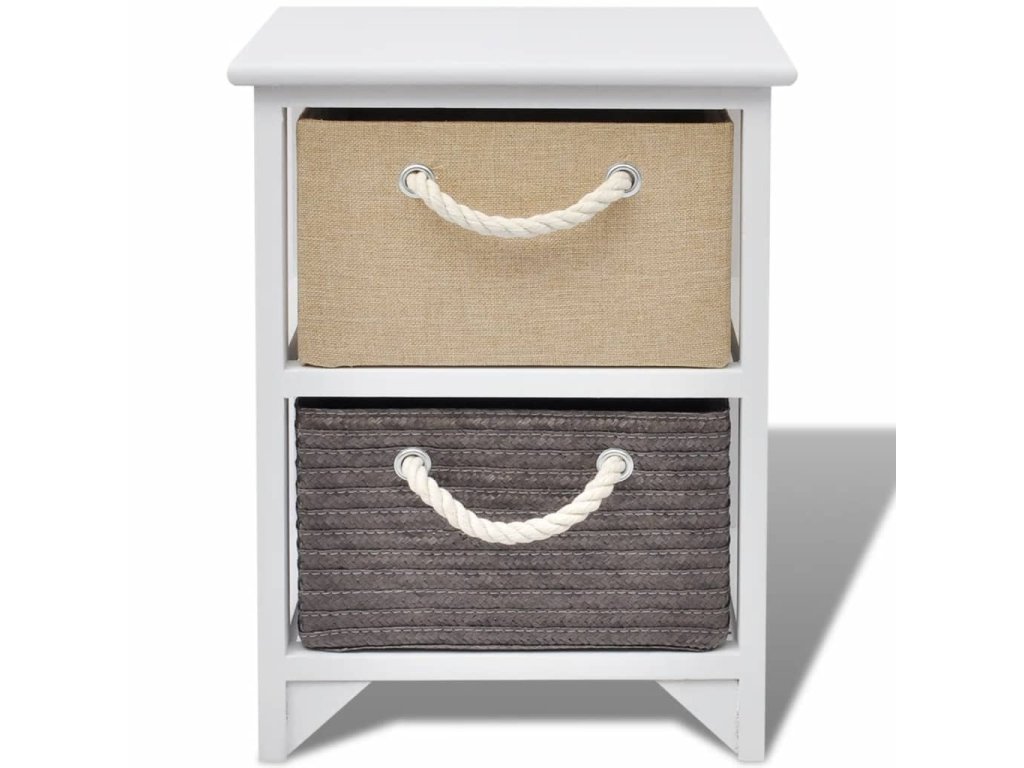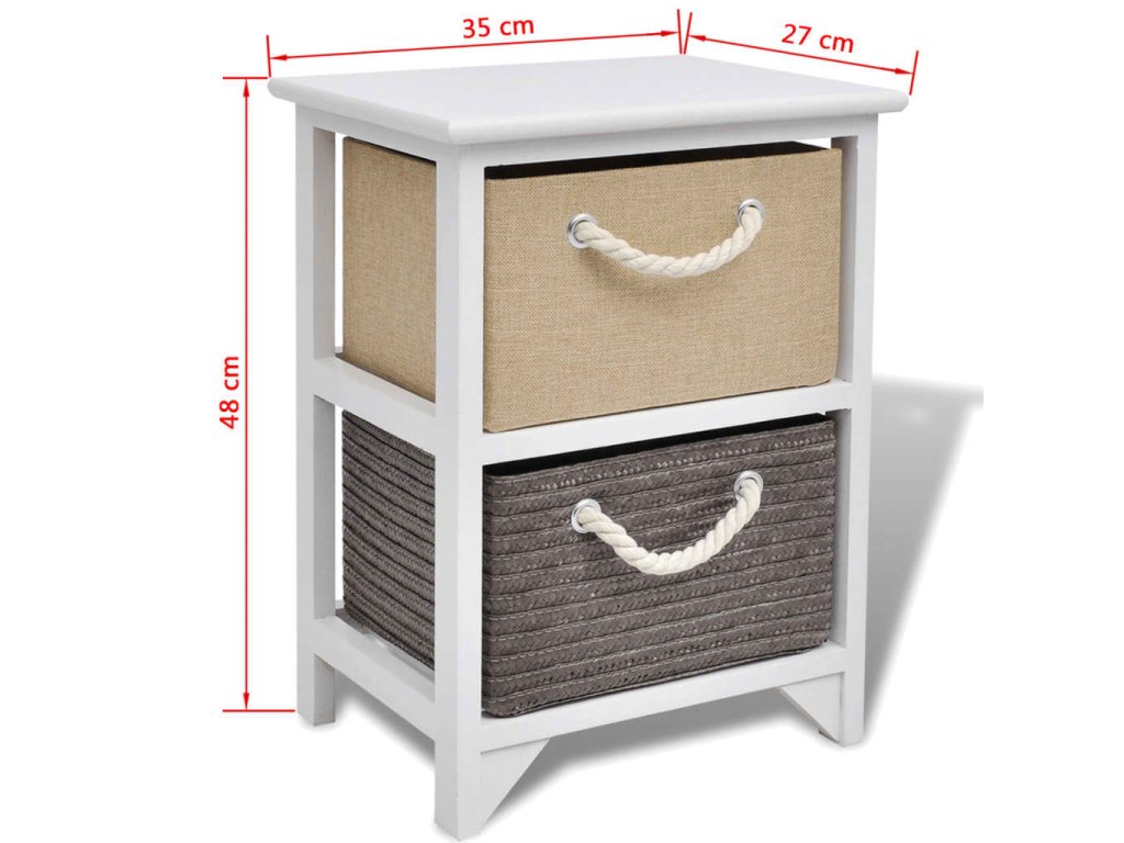 Tato skříňka má 2 zásuvky, které poskytují dostatek místa pro uspořádání menších předmětů na dosah. Zásuvky s provazovými úchytkami dodávají stolku venkovský styl.