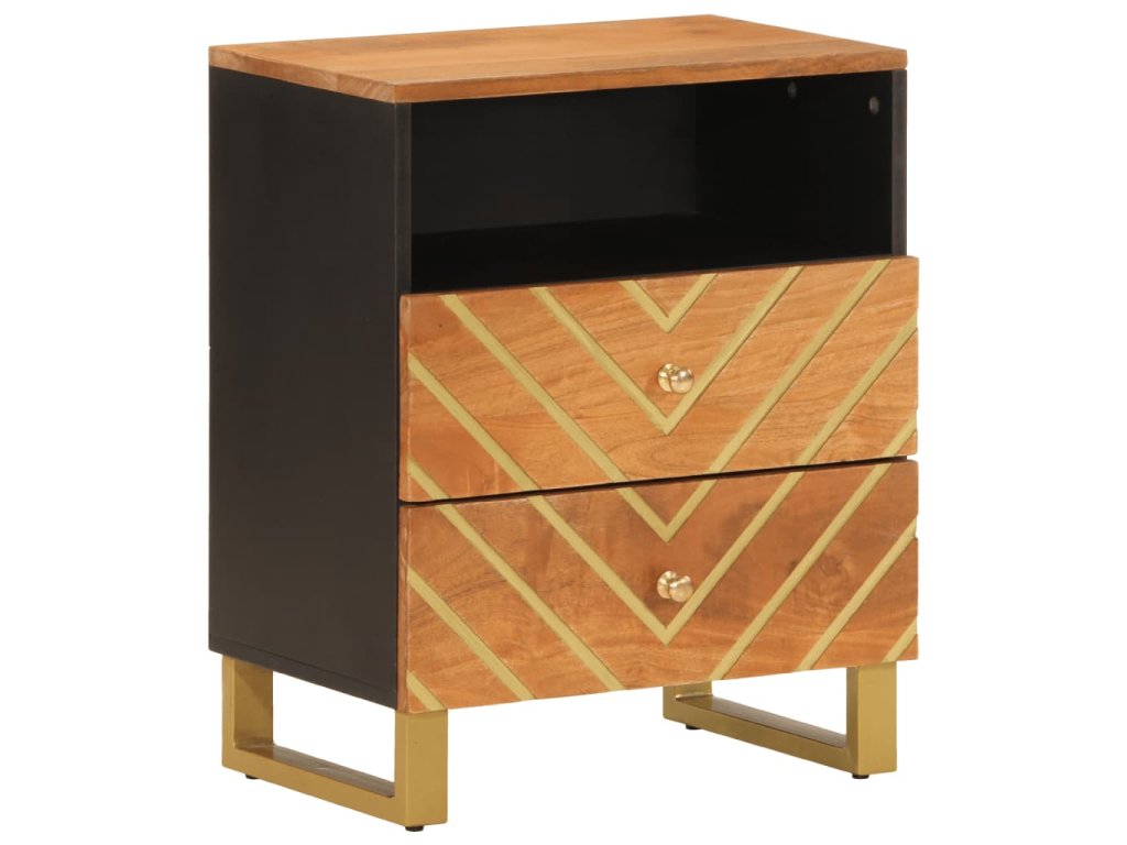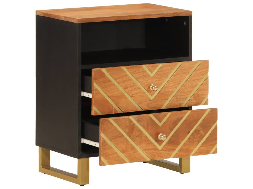 Noční stolek hnědý a černý 50 x 33 x 60 cm masivní mangovník