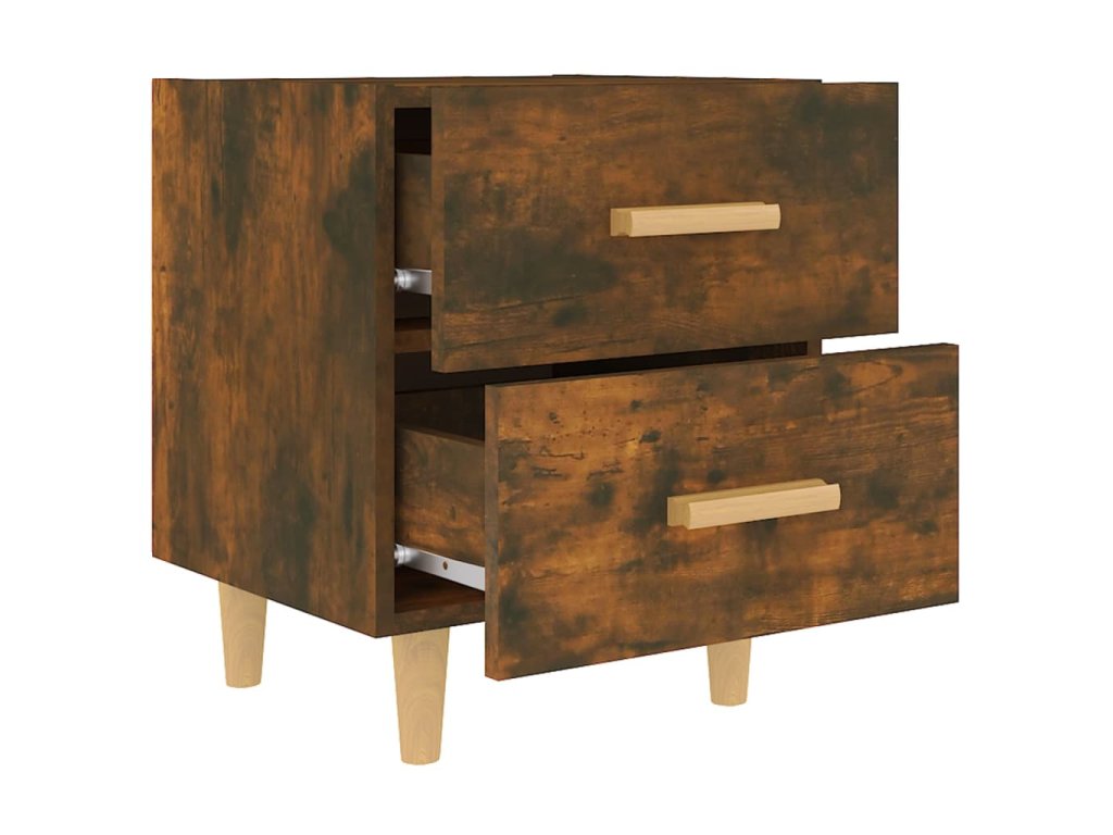 - Spousta úložného prostoru: Noční skříňka je vybavena dvěma zásuvkami s dřevěnými úchytkami. V prostorných zásuvkách budete mít všechny své věci přehledně uspořádané.