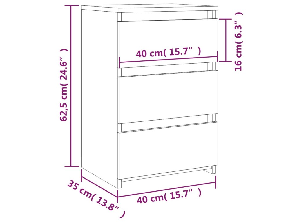 - Spousta úložného prostoru: Noční stolek je vybaven třemi zásuvkami. Úložný prostor vám umožní přehledně si uspořádat své věci.
