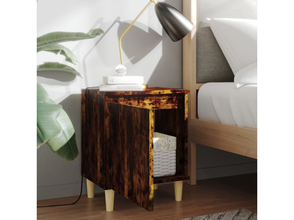 Noční stolek masivní dřevěné nohy kouřový dub 40 x 30 x 50 cm