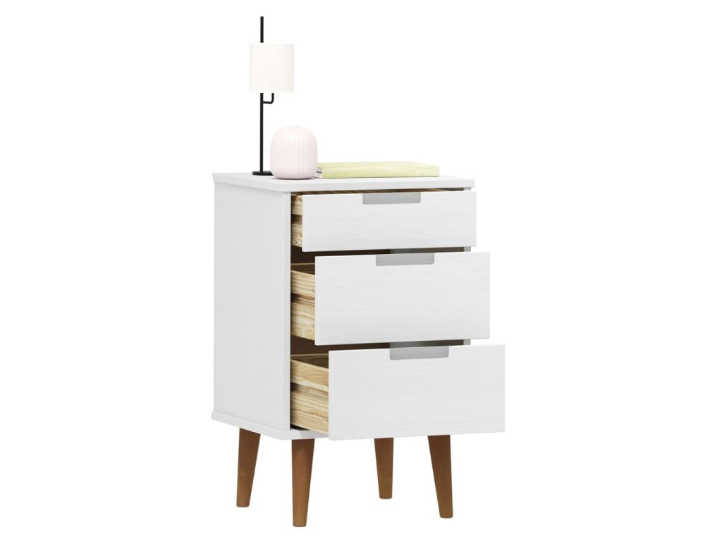 Noční stolek MOLDE bílý 40 x 35 x 65 cm masivní borové dřevo