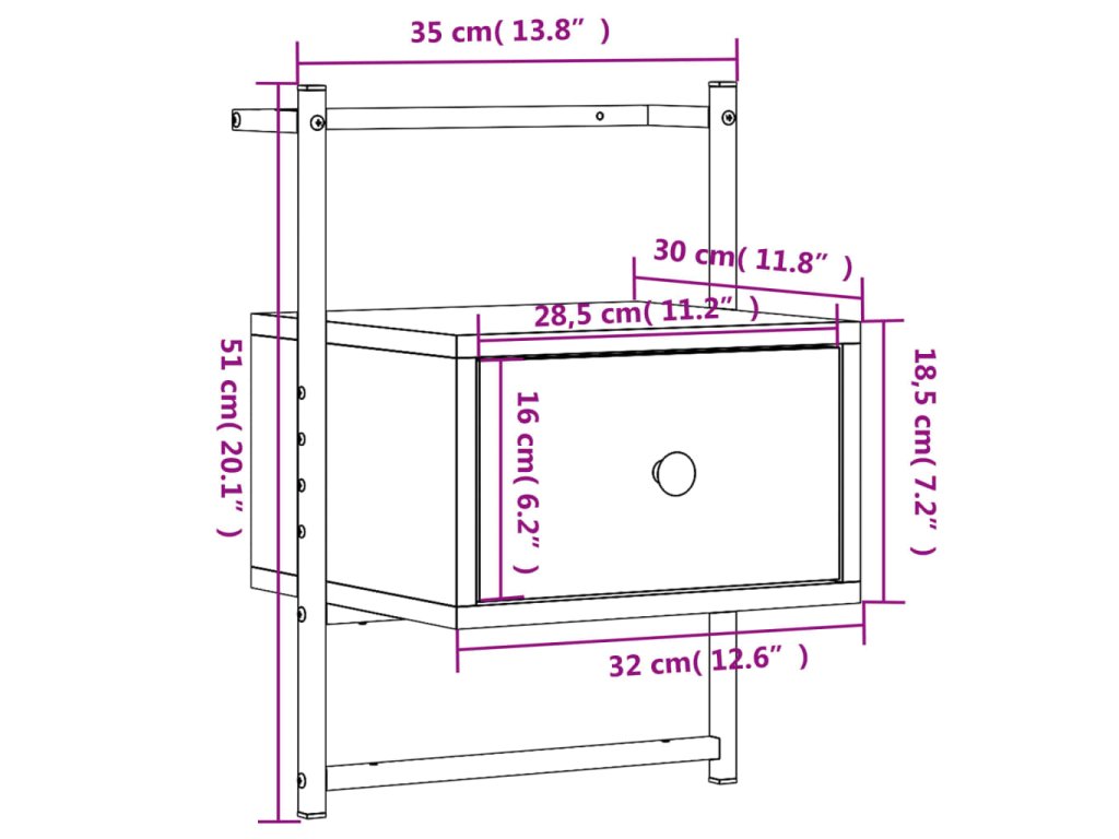 Noční stolek nástěnný kouřový dub 35x30x51 cm kompozitní dřevo