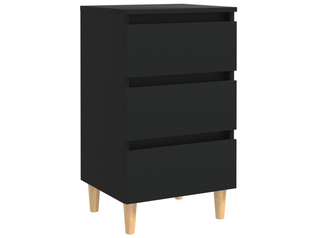 Noční stolek s masivními dřevěnými nohami černý 40 x 35 x 69 cm