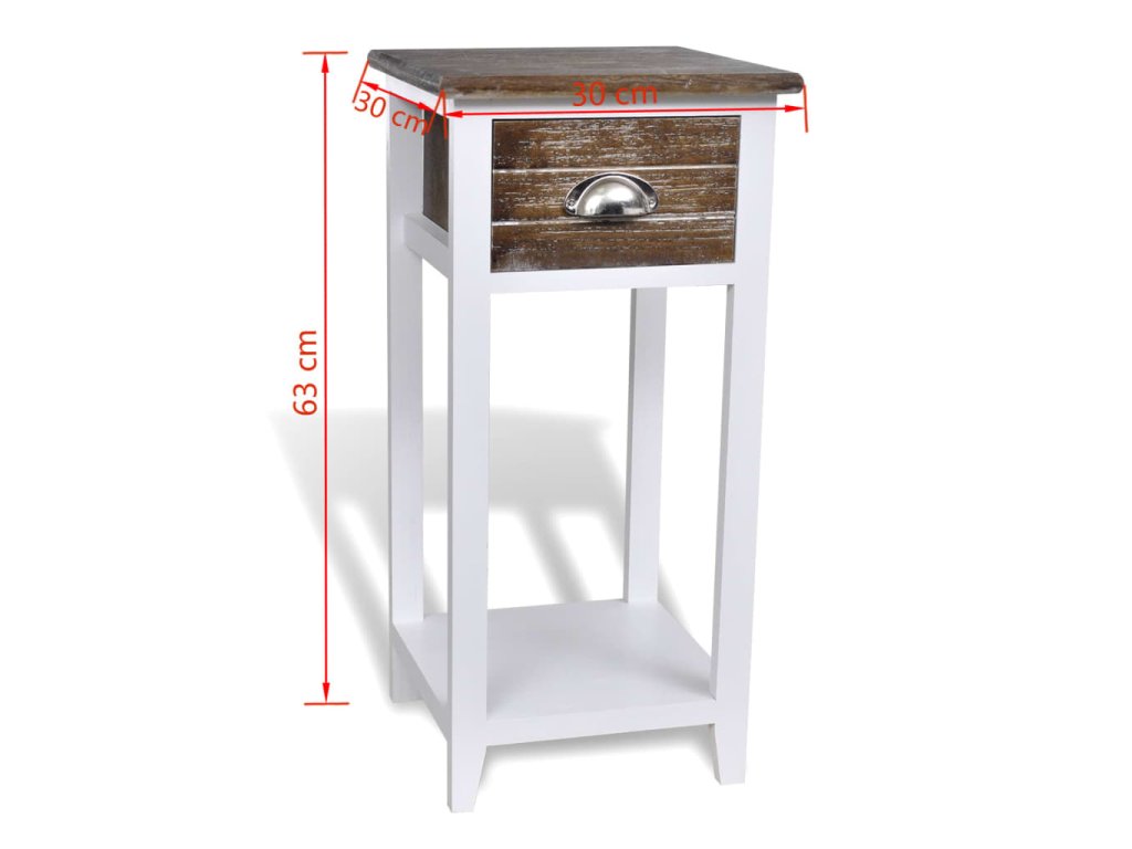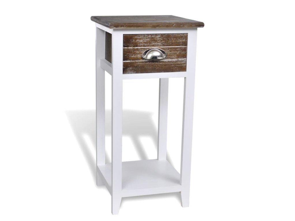 Noční stolek s 1 zásuvkou hnědý a bílý