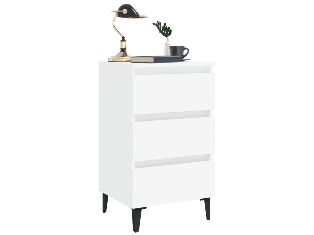 Noční stolek s kovovými nohami bílý 40 x 35 x 69 cm