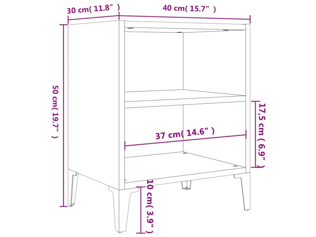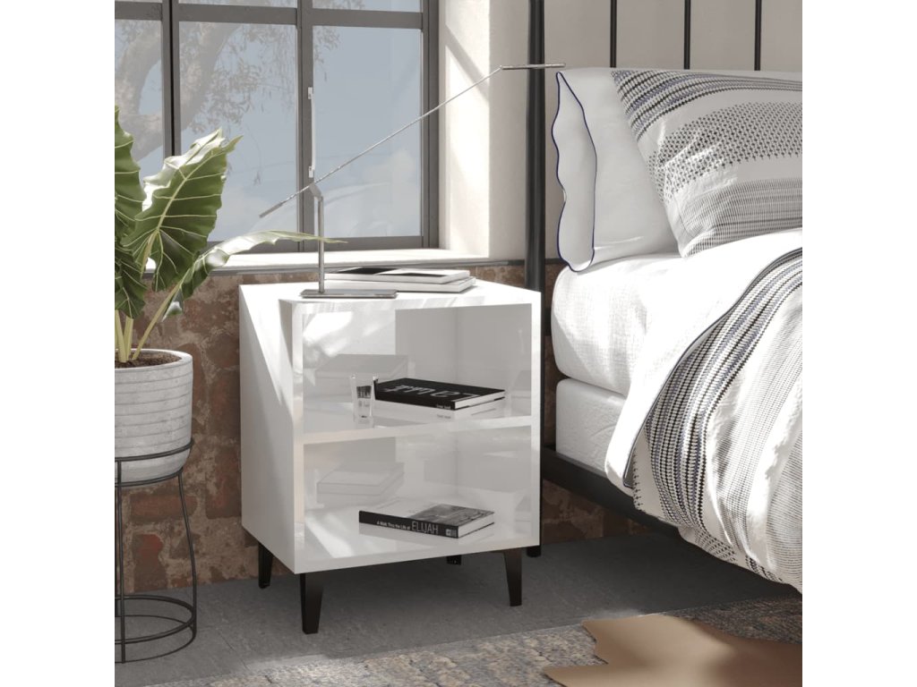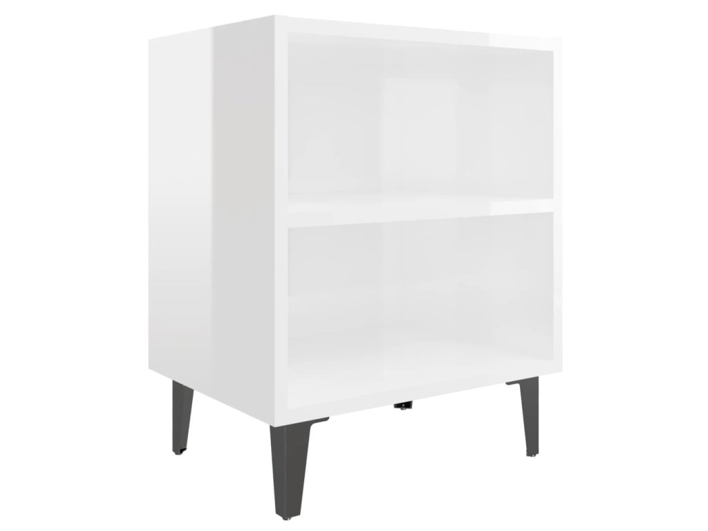 Noční stolek s kovovými nohami lesklý bílý 40 x 30 x 50 cm