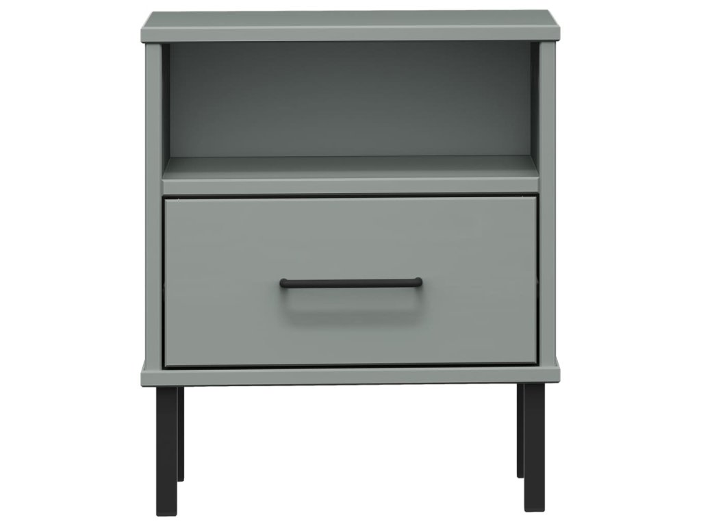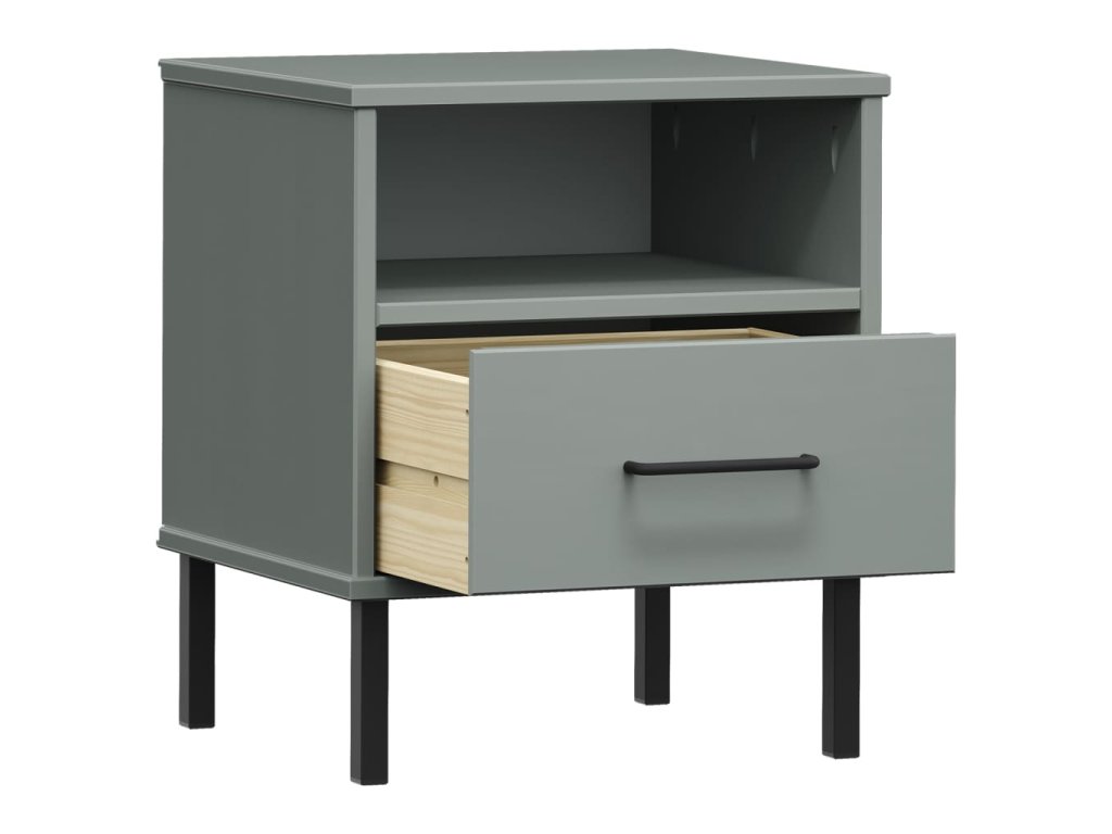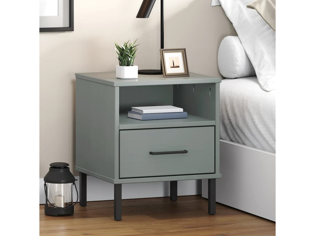 Noční stolek s kovovými nohami šedý masivní borové dřevo OSLO
