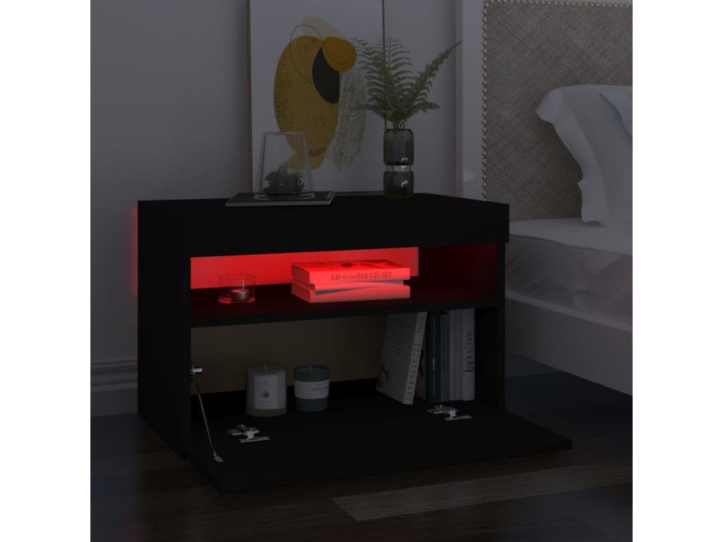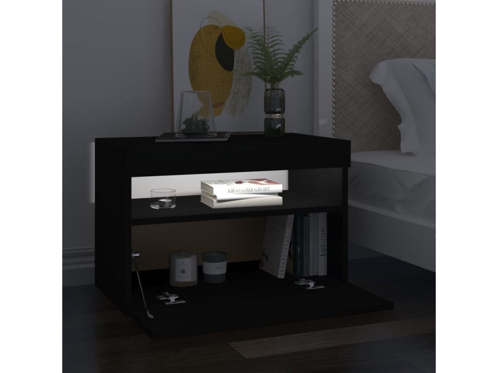 Noční stolek s LED osvětlením černý 60x35x40 kompozitní dřevo